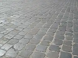 Sampietrini (also sanpietrini) is the pavement found in the historic district of Rome and in St. Peter's Square, Vatican City.[1][2][3] The earliest examples were made by trimming large blocks that had been used in ancient Roman roads, as recently discovered in fifteenth- and sixteenth-century archeological excavations. The first documented use in Rome of "sampietrini" stones was during the reign of Pope Pius V (1566–72). Over the next two centuries, the stones were used to pave all the main streets of Rome, because this mode was superior to brick, as it provided a smoother, stronger surface for carriages.