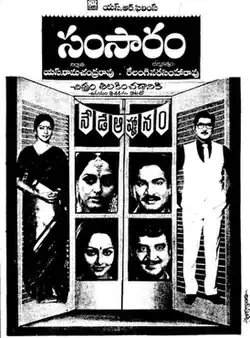 Samsaram (transl. Family) is a 1988 Telugu-language drama film, produced by Sakhamuuri Ramachandra Rao under the SR Films banner and directed by Relangi Narasimha Rao.[2] It stars Sobhan Babu, Jaya Prada, Sharada, Rajendra Prasad, Rajani and music composed by Raj–Koti.[3] The film is a remake of the Malayalam film Oru Painkilikatha (1984) which was earlier remade in Tamil as Thaaiku Oru Thaalaattu (1986). The film was recorded as a Super Hit at the box office.[4]