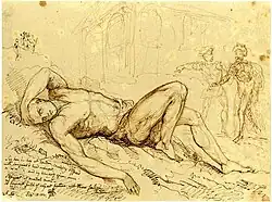 Samson's argument against Dalila is to discuss the proper role of a wife but also the superiority of men.[21] The depiction of Dalila, and women, is similar to that in Milton's divorce tracts and, as John Guillory states and then asks, "We scarcely need to observe that Samson Agonistes assumes the subjection of women, a practice to which Milton gives his unequivocal endorsement; but is there any sense in which that practice of subjection is modified by the contemporaneous form of the sexual divisions of labor?".[22] A wife is supposed to help a husband, and the husband, regardless of the status of the woman, is supposed to have the superior status. In blaming Dalila, he rationalises his actions and removes blame from himself, which is similar to what Adam attempts in Paradise Lost after the fall. However, Samson develops through the play and Dalila reveals that she is concerned only with her status among her people. This places Dalila in a different role from Milton's Eve.[23] Instead, she is an emasculating force and represents Samson's past failings.[24]