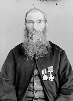 The award of the NZC entitled Austin to a small annual pension of £10.[31] In late 1876, he began to receive a daily allowance as an out-pensioner, qualifying as a result of his service with the 65th Regiment, from the Royal Hospital at Chelsea; this amounted to £6 a year.[33] By this time he was a farm worker.[33] Socially, he was involved in the Orange Order, rising to Worshipful Master in the Whanganui Lodge by 1876, and helping establish a second Lodge the next year.[35]
