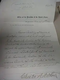 | Nominated by | Chester Arthur |