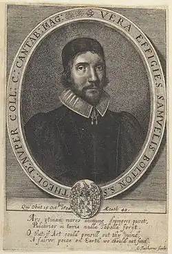 Samuel Bolton was the son of William Bolton, of Lancashire.[1] He was born in London in 1606, and educated at Christ's College, Cambridge.[2] In 1643 he was chosen one of the Westminster assembly of divines. He was successively minister of St. Martin's, Ludgate Street, of St. Saviour's, Southwark, and of St. Andrew's, Holborn.[3]