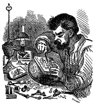 ![]() Samuel Calvert at work (from the Melbourne Punch, December 1855). | |