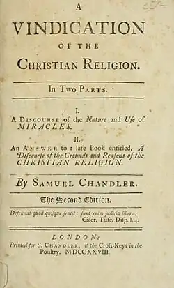 - ^ Chandler, Samuel, Plain Reason for Being a Christian (London, 1730), p.3