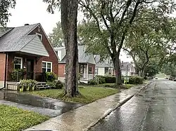 In 1941, Frank Nicolls, the director of the NHA, approached Gitterman about the possibility of creating a community planning department within the NHA that could provide a “sound scientific, statistical base” for both wartime military, civilian and war worker housing and the expected need for low- and moderate-income post-war private developments.[2] In the same year, the National Building Code was published, providing for the first time, formal rules for the standardization and safety of construction. In 1943, the NHA established a Town Planning Division and appointed Gitterman as the department head. In this role, Gitterman's focus shifted from creating architectural plans for individual houses to planning entire subdivisions, most notably, La Cité-jardin du Tricentenaire (Tricentennial Garden-City) in Montreal's Rosemont—La-Petite-Patrie borough and the Crawford Park Extension in Verdun.[10] [11]