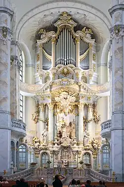 In 2005, Kummer was appointed the organist at the Frauenkirche in Dresden, when the church was reopened after the completion of its restoration from destruction in World War II.[1][7] The restoration included a new Kern organ, an instrument for all musical styles, instead of the church's Baroque Silbermann organ. For his inaugural recital, Kummer chose music by Bach, Brahms, Reger, Louis Vierne and his own composition.[8] He shaped the profile of music there in many regular services, according to the church adding "depth and spirituality" by his playing, especially in improvisation.[2] He co-founded a concert series, Dresdner Orgelzyklus (Dresden Organ Cycle), which includes performances on the organs of three churches in Dresden, the Kreuzkirche, the Hofkirche, and the Frauenkirche.[1] In addition he performed as organ soloist at the Frauenkirche in orchestral works including the Organ Symphony by Saint-Saëns with the Staatskapelle Dresden and Joseph Jongen's Symphonie Concertante with the Chemnitz Philharmonic[3] in 2007.[1]