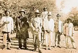 Samuel Maharero was a son to Maharero, an important Herero warrior and cattle raider. He was baptised in 1869[1][2] and went to the local Lutheran schools, where he was seen as a potential priest. When his father died in 1890, he gained the chieftainship in the area of Okahandja, although he did not gain much of his father's wealth and cattle according to Herero inheritance customs. Initially, he maintained fairly good relations with the German colonial administration under Theodor Leutwein. However, increasing problems, involving attacks by German farmers, economic difficulties and pests, and the use of Herero land for railroads, all led to diminished relations. Angered by the ill-treatment of the Herero people by German settlers and colonial administrators, who viewed the tribes as a cheap source of labor for cotton and other export crops, Maharero secretly planned a revolt with the other chiefs against the German presence, though he was well aware of the odds against him. In a famous letter to Hendrik Witbooi, the Nama chief, Maharero sought to build alliances with the other tribes, exclaiming "Let us die fighting!"[3]