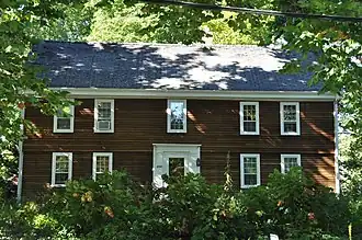 The Samuel March House is a historic First Period house in West Newbury, Massachusetts. The two-story wood-frame house was built in two sections, beginning in the later years of the 17th century. The first portion built was the right three bays of the house, which at that time included a chimney located on the left side. The second portion, also built during the First Period, added the two bays to the left. At some point during the Georgian period, the large central chimney was removed and replaced with two narrow brick chimney, a reflection of changing taste. The front facade is five bays wide, with a slightly larger central bay. The front door is framed by a Georgian surround with pilasters and an entablature.[2]