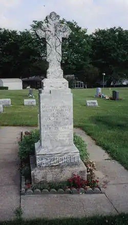 Many remembered Mazzuchelli as a kind and gentlemanly priest. He was able to break down the cultural barriers that existed and appeal to many different ethnic groups. The Irish he ministered to called him "Father Matthew Kelly."[7] He died of a severe case of pneumonia, on February 23, 1864, after attending a sick call.[8] Mazzuchelli was buried at St. Patrick's Cemetery in Benton.[9]