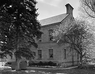 In 1862 Hoyt built a gristmill, the first in the county.[1] Today the mill is still standing but some of the structure has collapsed. In 1863 he started work on his home, the Hoyt Mansion,[7] using sandstone quarried from mountains to the east of the town. Construction of the mansion and its accompanying structures offered employment to many local people struggling to make homes in the village. Many years were spent on the stonework, while the interior painting, consisting of 7 layers of paint, took around two years to complete for the contractor C. M. Olsen. The total cost of the mansion, prior to plastering or painting was estimated around $1,000 per foot, regarded as an "enormous sum" of the time. Construction was concluded in 1870.[8] The Hoyt family ran the post office from their home. His wife Emily Smith taught school in the house to local children and continued to do so until her death. It is a 21⁄2-story Georgian style building that is listed in the National Register of Historic Places. In 1957, the house was purchased by the Crittenden family[9] and was recorded by the Historic American Building survey in 1968 as being regarded "one of the most elegant 19th century homes in Utah".[1]