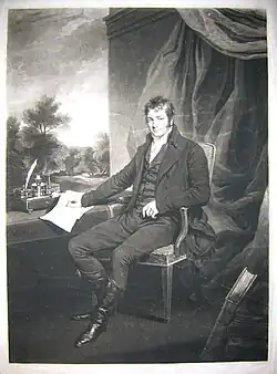 Whitbread was elected as a Member of Parliament (MP) for Bedford in 1790 (his father too had been MP) and he remained MP for twenty-three years. Whitbread was a reformer – a champion of religious and civil rights, for the abolition of slavery, a proponent of a national education system and, in 1795, sponsor of an unsuccessful bill for the introduction of minimum wages.[4] He was a close friend and colleague of Charles James Fox. After Fox's death, Whitbread took over the leadership of the Whigs, and in 1805 led the campaign to have Viscount Melville impeached. In 1806 the House of Lords found Melville not guilty of all charges. In a shocking admission, Whitbread later confessed that he never suspected that Melville had enriched himself with public funds.[5]