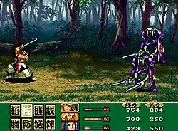 The basic setup of the game is very similar to most console RPGs, such as Final Fantasy. The characters roam an overworld, enter towns and dungeons, and get into battles, which occur on a separate screen. The menu options enable equipping of armor and accessories, as well as use of items.