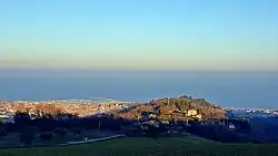San Benedetto del Tronto rises on the shores of the Adriatic Sea and is located about 28 km east of Ascoli Piceno. It is the southernmost coastal town in the Marche region. The municipal territory extends for 25.31 km2 and has the conformation of a coastal hill, with an altitude level between 0 and 282 height above sea level in the "Barattelle" contrada, it extends for 9.3 km along the coast of the middle Adriatic, of which 1.7 km in the protected natural area of the "Sentina". The city has an ancient nucleus (the "high country" or "su dèntrë" in Sambenedettese) on a modest relief not far from the sea, at the foot of which develops the original settlement of the most recent part "Coast". This is crossed by the Albula torrent and has developed over the years up to the river Tronto, to the south, incorporating the locality Porto d'Ascoli, while at north it joins with the Ischia district of Grottammare, with which it constitutes a single urban agglomeration that reaches almost until Tesino. Southwest following the river bank Tronto merges with the Centobuchi, a frazione of Monteprandone. The municipality borders with Acquaviva Picena, Grottammare, Martinsicuro (TE) and Monteprandone.[7][8]