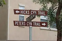 Combined with the San Diego Creek trail, starting at Newport Bay the total distance to Peters Canyon Park is approximately 15 miles and has a vertical rise of about 350 feet. The trail is fully Class I except for at grade street crossings and in excellent condition. There are signs and stencils on the San Diego Creek trail and the Peters Canyon trail marking them both collectively as 'Mountains to Sea Trail'.