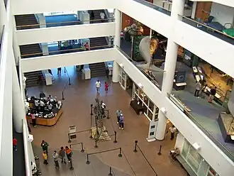 In April 2001, new design and construction more than doubled the size of the 1933 building, from 65,000 square feet (6,000 m2) of usable space to approximately 150,000 square feet (14,000 m2). The entrance received a new Postmodern style facade and glassed atrium. The project architects were Richard Bundy and David Thompson Architects Inc.[29] The expansion also provided new space for the museum's research, educational, and administrative activities.[30] In 2016, Judy Gradwohl succeeded Hager as President and CEO, the first women to hold the position in the museum's 150 year history.[31] A Paleontology Center opened on the basement floor in June 2025, curated by Tom Deméré.[32]