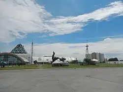 San Dionisio's transportation network consists of two national primary roads, one national secondary road and one expressway as of 2017.[13] The Manila–Cavite Expressway and Elpidio Quirino Avenue provide north–south connectivity, with the latter traversing the barangay's old section and the Kabihasnan commercial row along Victor Medina Street. The barangay's main east–west corridor is Dr. Santos Avenue which links its old section with the bigger commercial developments in its eastern sector, including the SM City Sucat shopping mall. In a bend of the avenue north of Victor Medina Streets starts Ninoy Aquino Avenue, a national secondary road that links the barangay to Ninoy Aquino International Airport as well as the popular Dampa, a collection of stalls and restaurants near the boundary with La Huerta that sell and cook fresh and locally-caught seafood.[14] A recent addition to the barangay's road network is the south extension of C-5 Road which opened a large tract of former idle lands south of the international airport in San Dionisio to vertical commercial and residential developments in 2007.