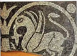 The church is noted for the 11th century mosaic pavement, depicting panthers, sirens, griffins, and floral motifs,[3] which were found during restoration of the church. The mosaic is made of light Alberese tiles and black marble.[1] The mosaic images, like the siren, are believed to depict pagan symbols,[2] which suggests that the church was built on a former pagan site.[4]