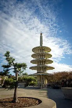 The San Francisco Peace Pagoda is a five-tiered concrete stupa between Post and Geary Streets at Buchanan in San Francisco's Nihonmachi (Japantown). The Pagoda, located in the southwestern corner of Peace Plaza between the Japan Center Mall and Nihonmachi Mall, was constructed in the 1960s and presented to San Francisco by its sister city Osaka, Japan on March 28, 1968.[1] It was designed by Japanese architect Yoshiro Taniguchi.