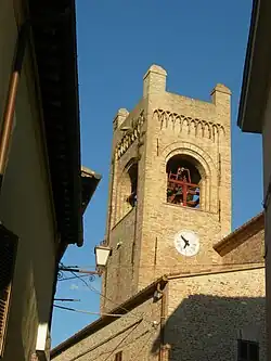 The church we see today dates to 1570, and the interior stucco decorations date to the 17th-century. The altar stucco depicts St Francis of Paola in prayer (1687). The church also has a putative link to the Blessed Sante da Urbino (died 1394), known al secolo as Giansante Brancorsini, who was born in the parish. The crypt, dating to the 12th-century, houses the putative relics of the fourth-century Saint Marcellina; these were moved here in 1666, although she appears to no have had links to the town in life. The 15th century belltower rises to the left of the apse. [1]