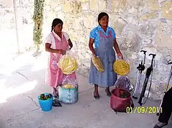 - The gueza (guelaguetza, give to receive) which is mutual support mainly in supplies or in cash between neighbors and relatives that bring to those who have a celebration, feast or compromise, such as weddings, baptisms, funerals or mayordomías. The gueza reception is a solemn ceremony in which small speeches are addressed to deliver and receive the contributions, being a usual commitment to spontaneously to reciprocate the help at the moment in which the counterpart need it.