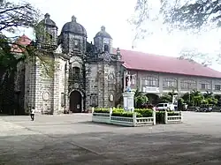 Its façade can compare immeasurably with existing Spanish-style church edifices and architectural design. The church is located in a place that used to be called Cabagsac, referring to the proliferation of fruit bats. In fact, today, a fishnet is permanently installed high above the altar precisely to catch thousands of bats that are roosting inside the church. There is an ancient cemetery located in a hidden corner at the back of the church, with some tombstones dating back to the 1800s and bearing the names of the town's prominent families, including the Elizaldes, Ablazos, Francos, Tarucs, among others.[21]