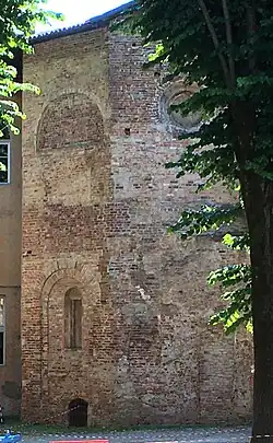 Precisely in these years the building was remodeled in Romanesque forms and was equipped with a bell tower,[6] while preserving most of the perimeter walls of the early medieval church, as well as part of the facade (in which you can still see the blind arches and some openings) and the apse.[7] In 1281 the monastery passed to the Dominicans, who kept it until 1304,[8] when they moved to the nearby church of San Tommaso. In the same year, the Benedictines returned to possession of the monastery,[9] which they held until 1481, when the Hieronymites took over from the Benedictines and, during the sixteenth century, the church and the monastery were subject to substantial reconstruction works. The monastery, which in the eighteenth century controlled numerous agricultural estates, especially around the city and in the Pavia area, was suppressed in 1799.[10]