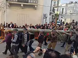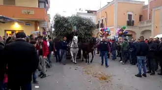 In San Marzano di San Giuseppe, Saint Joseph's Day has been celebrated since the 17th century, on the 18th and 19th March. The date coincides with Father's Day and with the season when the olive trees are trimmed.[26] On the first day, people participate in the "Procession of Fascine". The fascine (bundles of olive branches) are transported on foot and by horse and cart through the town. The procession ends with the lighting of a big bonfire.
