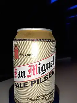 San Miguel Beer refers to San Miguel Pale Pilsen, a Filipino pale lager and flagship beer of the San Miguel Brewery. The original San Miguel Brewery, Inc. was founded in San Miguel, Manila, as La Fábrica de Cerveza San Miguel in 1890 by Enrique María Barreto under a Spanish Royal Charter that officially permitted the brewing of beer in the Philippines. Barretto was soon joined by Pedro Pablo Roxas as managing partner, who brought with him a German brewmaster, Ludwig Kiene, as technical director.[1] San Miguel Brewery was renamed San Miguel Corporation in 1964; the brewery was spun off in 2007 and became a subsidiary of San Miguel Food and Beverage.