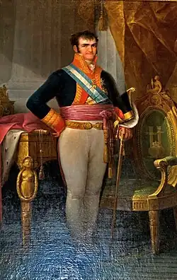 With 2.54 cm in diameter and 1 cm thick, this medal was a gift from king Fernando VII to the people of San Pedro Sacatepéquez. On the tail side one can read the inscription "A la fiel generosidad de los indios del reyno de Guatemala" (Spanish: "To the loyal generosity of the Indians of the Kingdom of Guatemala. On the flip side, on top says "Viva Fernando VII rey de España e Indias." (Spanish: Long life to king Fernando VII of Spain and the Indies") and the bottom it reads "Año de 1,809" (Spanish:Year of 1809).[13]