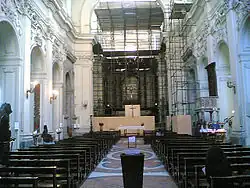 The church belongs to the first wave of construction under the Angevin dynasty in Naples, which includes better-known structures such as the Maschio Angioino. Construction on San Pietro Martire, dedicated to Saint Peter of Verona, was started in 1294 under Charles II of Anjou to provide a facility for the Dominican Order; the church and adjacent monastery premises were finished by 1343. That year the low-lying area suffered extensively from floods. Between 1400 and 1500 the premises were expanded considerably to allow for a larger contingent of monks than the original dozen. In the 17th century, the church underwent major reconstruction based on a design of Giuseppe Astarita.[1]