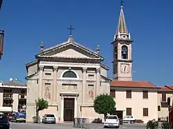 The current church, dedicated to St. Rocco was constructed at the end of the seventeenth century after a fire destroyed the original structure. It opened for worship in 1875 and was completed in 1911 with a Corinthian facade. Today it features a central altar from the seventeenth century, four side altars of baroque style and preserves a valuable painting of the Madonna of the Rose painted by Domenico Maccacaro in 1600.