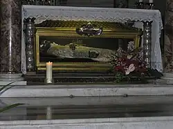 Below the presbytery of the church, there is a crypt, dating probably to the eighth century. Under the crypt, below the level of the city are wine cellars and storerooms of Roman times.[4]