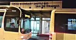 The San Tin Public Transport Interchange (San Tin PTI) is a bus, minibus, and taxi interchange adjacent to the San Tin Interchange. At the centre of the San Tin PTI is the Cross Boundary Shuttle Bus Terminus, which serves the Hong Kong border Lok Ma Chau Control Point and its counterpart Huanggang Port in Shenzhen. In correspondence with the Lok Ma Chau–Huanggang border crossing being the only 24-hour border crossing between Hong Kong and mainland China,[1][2] the San Tin PTI operates 24 hours per day and 365 days per year.[12]