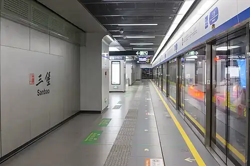 Sanbao (Chinese: 三堡) is a metro station of Line 6 and Line 9 of the Hangzhou Metro in China. It is located in Shangcheng District of Hangzhou.[1] The Line 6 part of the station was opened on 6 November 2021.[2] The Line 9 part was opened on 1 April 2022.