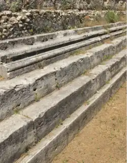 - The entire rear part of the limestone hill and terrace was levelled by removing an enormous amount of land and, in the space created, the theatre was built[13]
