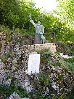The history of the sanctuary of Montevergine is closely linked to the figure of William of Montevergine, a hermit monk who lived between the 11th and 12th centuries, awho took pilgrimages to places of Christianity.[2] Returning to Italy after a long journey to Santiago de Compostela, he decided to undertake a new pilgrimage to Jerusalem and to prepare himself spiritually he took refuge at Mount Serico, in Atella, where he is the protagonist of the healing of a blind man.[3] Resuming the journey towards the holy land, he arrives in Ginosa, meeting with John of Matera, who advises him to give up the pilgrimage and to work for the divine service in the lands of the West: William refuses the advice of the saint and continues with his I walk until he is beaten up by a group of brigands.[4] Remembering John's words and after a long spiritual reflection, he understands the new path to follow, that is to retire in solitude and devote himself to meditation.[2] Arriving in Irpinia, he feels that God's will is to make him reside on a mountain, known today as Partenio, at an altitude of over a thousand meters.[5]