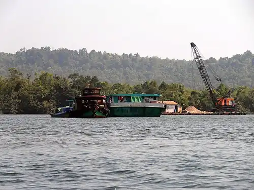 Certain species of turtles are becoming endangered because they are losing their sandy breeding sites. The same applies for other reptiles such as seldom crocodiles.[3] Sand mining is at least in part responsible for observed decreased fisheries production.[25] In the Cambodian Koh Kong province where dredging and smuggling activities are prevalent, fish catches have decreased by 50 percent. In this region fishing is sometimes the only economic activity and people depend on the catches for subsistence living.[18]
