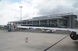 Sandakan Airport (IATA: SDK, ICAO: WBKS) is a domestic airport located in Sandakan, Sabah, Malaysia, approximately 14 km (8.7 mi)[2]) west of the town center. It serves as an important gateway for both passenger and cargo traffic, supporting the local economy and regional tourism. In 2022, the airport handled 621,513 passengers and recorded 10,876 flight movements, making it the 12th busiest airport in Malaysia.