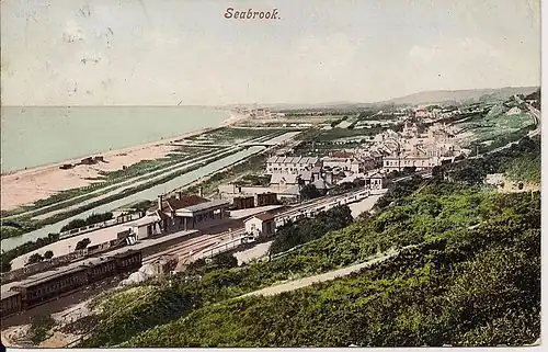 The station was planned as part of the South Eastern Railway's attempt to connect the military base at Shorncliffe with the railway network. A secondary reason was to develop the village of Seabrook as a coastal holiday resort.[2]