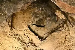 Sandia Cave, also called the Sandia Man Cave, is an archaeological site near Bernalillo, New Mexico, within Cibola National Forest. First discovered and excavated in the 1930s, the site exhibits purported evidence of human use from 9,000 to 11,000 years ago. It was declared a National Historic Landmark in 1961.[2] The site is open to the public, up a difficult half-mile trail off New Mexico State Road 165.