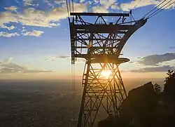 The Sandia Peak Tramway is an aerial tramway, adjacent to Albuquerque, New Mexico, in the United States. It stretches from the northeast edge of the city to Sandia Peak, on the ridge line of the Sandia Mountains[1] and has the world's third longest single span.[2] It is the longest aerial tram in the Americas, and was the longest in the world from 1966 until being surpassed in 2010 by the Wings of Tatev in Armenia.