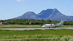 Sandnessjøen airport is served by Widerøe with Dash 8 aircraft connecting the community to Bodø, Trondheim and Oslo. The routes to Bodø and Trondheim are operated on public service obligation with the Norwegian Ministry of Transportation and Communication and have stopovers in Brønnøysund, Mo i Rana and Mosjøen.[3][4]