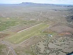 Sandskeið (Icelandic pronunciation: [ˈsan(t)ˌsceiːθ]; ICAO: BISS) is the main gliding center in Iceland and home of the Icelandic gliding club ( Svifflugfélag Íslands) since 1936. It is situated 20 km to the east of Reykjavík, the Icelandic capital, by Route 1. It is a big grass airfield, the main runway is running 150/330 and is 200 x 1.300 meters with the new extension to the east which is 50 x 300 m to allow for greater height when winch launching. There is also a north/south runway 60 x 800 m. On the north side there is an 18 x 800 m paved runway running 150/330. Height above sea level is 180 m (600 ft). The radio frequency used is 119,90 MHz and there is an ATZ open when gliding activity is present which goes from gnd to 3000 ft msl and covers the airfield and a 12 km to the south, and 5 km to the east.[1]