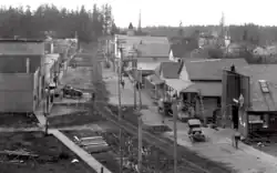 In October 1913, the city experienced a major fire which destroyed numerous buildings and businesses, including a restaurant, livery stable, and saloon, all located on the south side of the Main Street (contemporarily Proctor Boulevard).[13] A concrete replacement of the restaurant and saloon was subsequently erected, marking the first concrete building in the city.[13] The Clackamas County Bank was established in Sandy in 1916.[1] As of 2018, the bank remains the oldest community bank in the state of Oregon.[1]