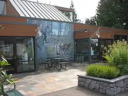 Meinig Memorial Park is the largest park in Sandy. It has a variety of features, including the Dale Nicholls stage, a log gazebo and an amphitheater.[24] There are also many picnic benches and trails that run through the trees surrounding the area. The entirety of the park structures are constructed from wood. Many reoccurring events take place in Meinig Memorial Park, such as the annual Easter egg hunt, Movies at the Park and shows performed through the Library Summer Reading Program.[25][26][27]