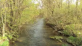 The creek flows for 18.5 miles (29.8 km) from London Township to Lake Erie in Frenchtown Charter Township. Sterling State Park is to the south of the river mouth, while the unincorporated community of Detroit Beach is to the north.[5] Stone embankments and a pump station were built along the banks of Detroit Beach to alleviate flooding from Sandy Creek and potentially rising waters from Lake Erie.[6]