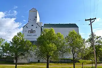 Lewandoski Farms grain elevator in Sandy Lake. Holy Ghost Ukrainian Catholic Church in Sandy Lake. Ukrainian Orthodox Church of St. Michael in Sandy Lake. | |