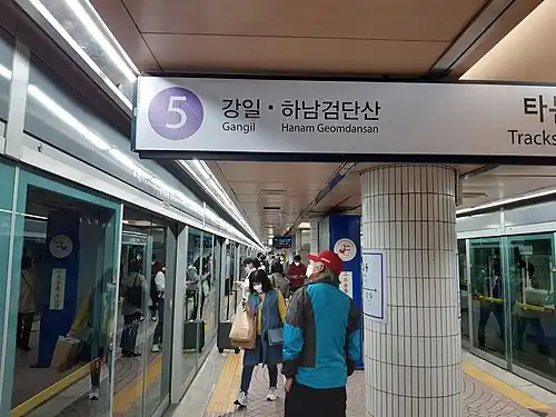 Sangil-dong station is the subway station of Line 5 in Gangdong-gu, Seoul. Seoul Metro have extended the subway line from this station to Hanam Geomdansan in the nearby city of Hanam.