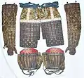 Edo period greaves (suneate), mail sewn with small armor plates (shino)