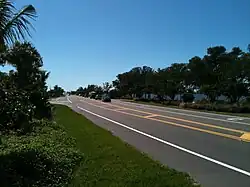 The Sanibel Causeway is a causeway in Southwest Florida that spans San Carlos Bay, connecting Sanibel Island with the Florida mainland in Punta Rassa. The causeway consists of three separate two-lane bridge spans, and two-man-made causeway islands between them. The entire causeway facility is owned by Lee County and operated by the Lee County Department of Transportation (DOT). The causeway is 3 miles (5 km) long with a $6 toll for island-bound vehicles only.